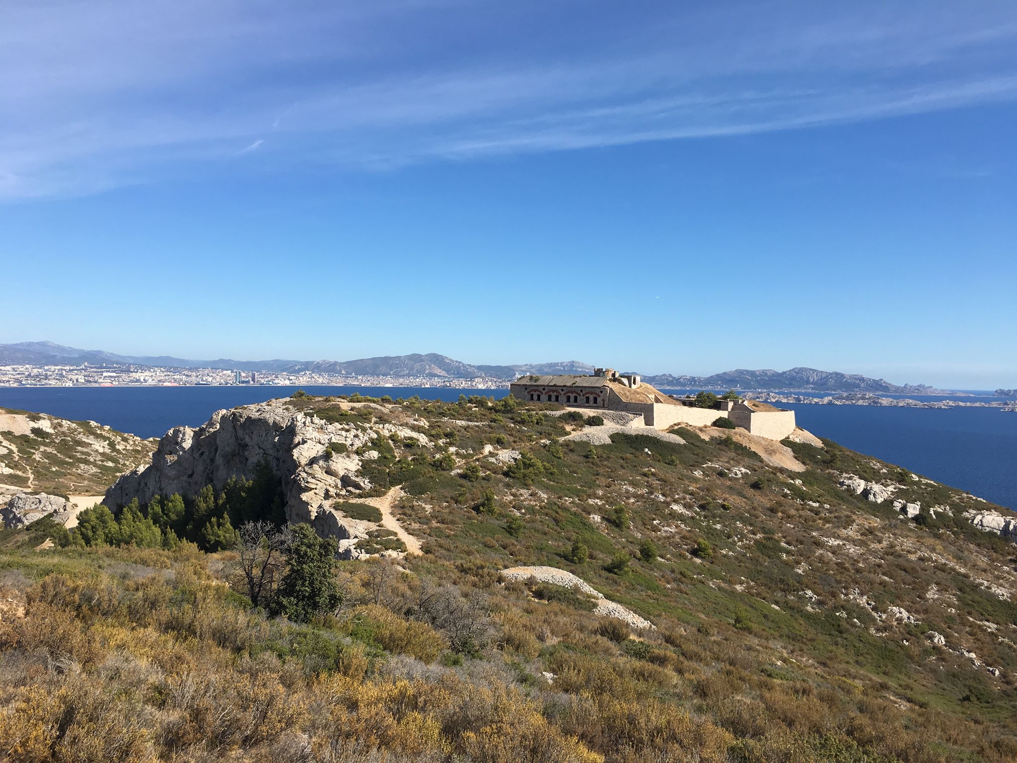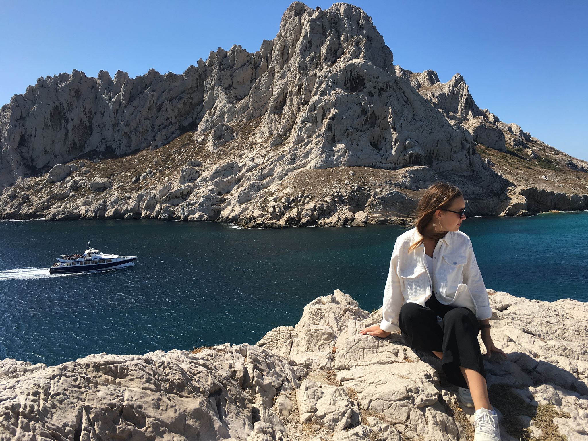 Attention à ne pas faire comme nous et prévoyez de bonnes chaussures de marche car certains passages sont assez escarpés, voire dangereux. Le sentier en lui même n’est pas difficile, il faut simplement faire attention aux rochers lissés par le vent et le passage des randonneurs. Pour celles et ceux qui ont un peu le vertige, ce ne sera pas la randonnée la plus reposante de votre vie. Néanmoins, cela vaut quand même la peine d’y aller, car la vue durant la randonnée est à couper le souffle et la cité phocéenne prend un tout autre visage vu de loin. Après un peu plus d’une heure de rando nous sommes arrivés à destination !
