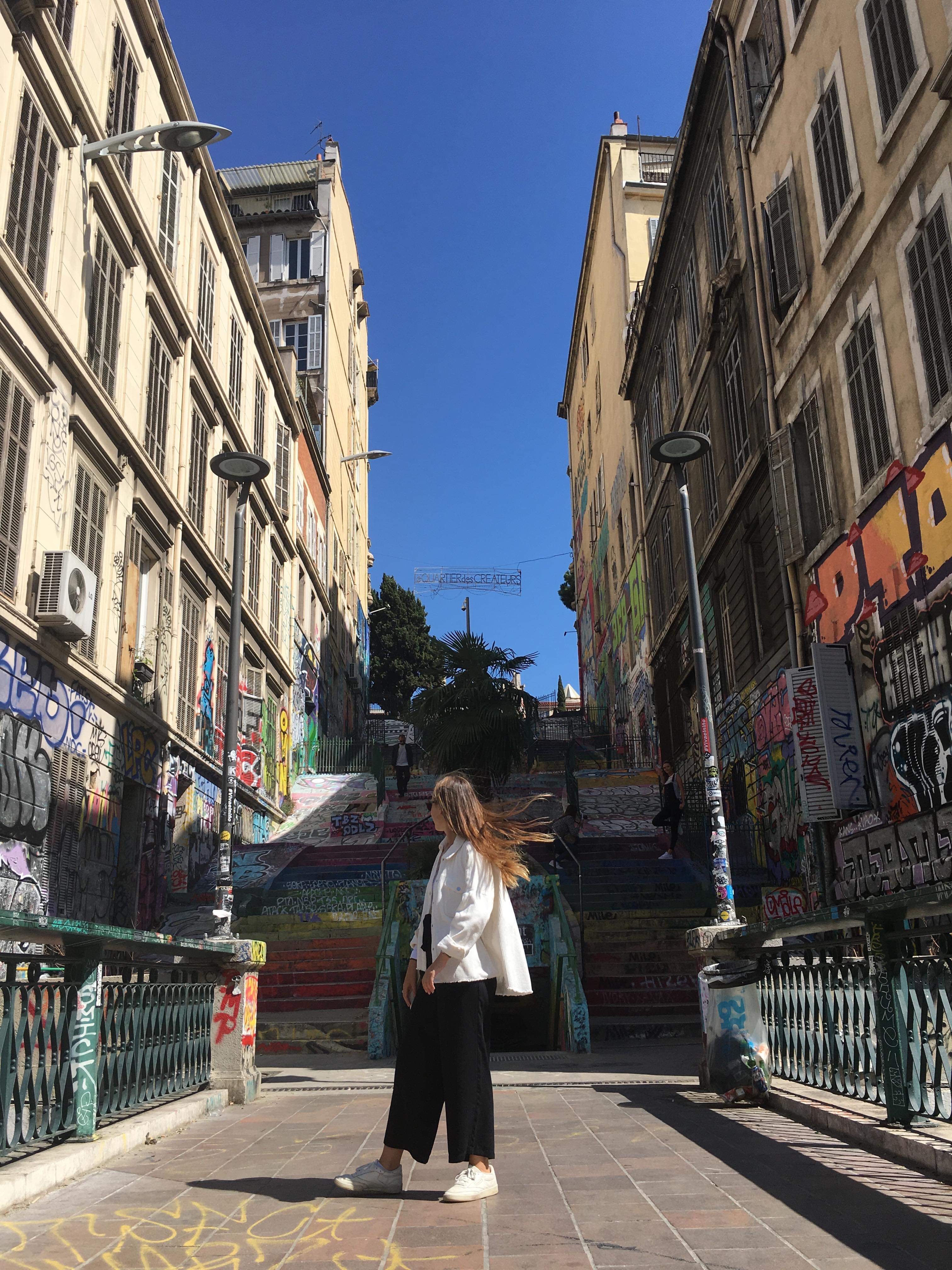 Après avoir repris des forces, il était maintenant temps de partir à l’exploration du Quartier du Panier. Ce quartier est le plus ancien et le plus typique de la ville, ainsi que le plus touristique ! Vous y trouverez des petites boutiques de créateurs, des restaurants, du street art… On a été séduit par ses rues étroites, colorées et fleuries. Se balader dans le quartier du Panier procure la sensation d’être hors du temps au sein de la deuxième plus grande ville de France. Un sentiment paisible s’installe en nous, le même sentiment que l’on peut avoir en visitant un petit village provençal.