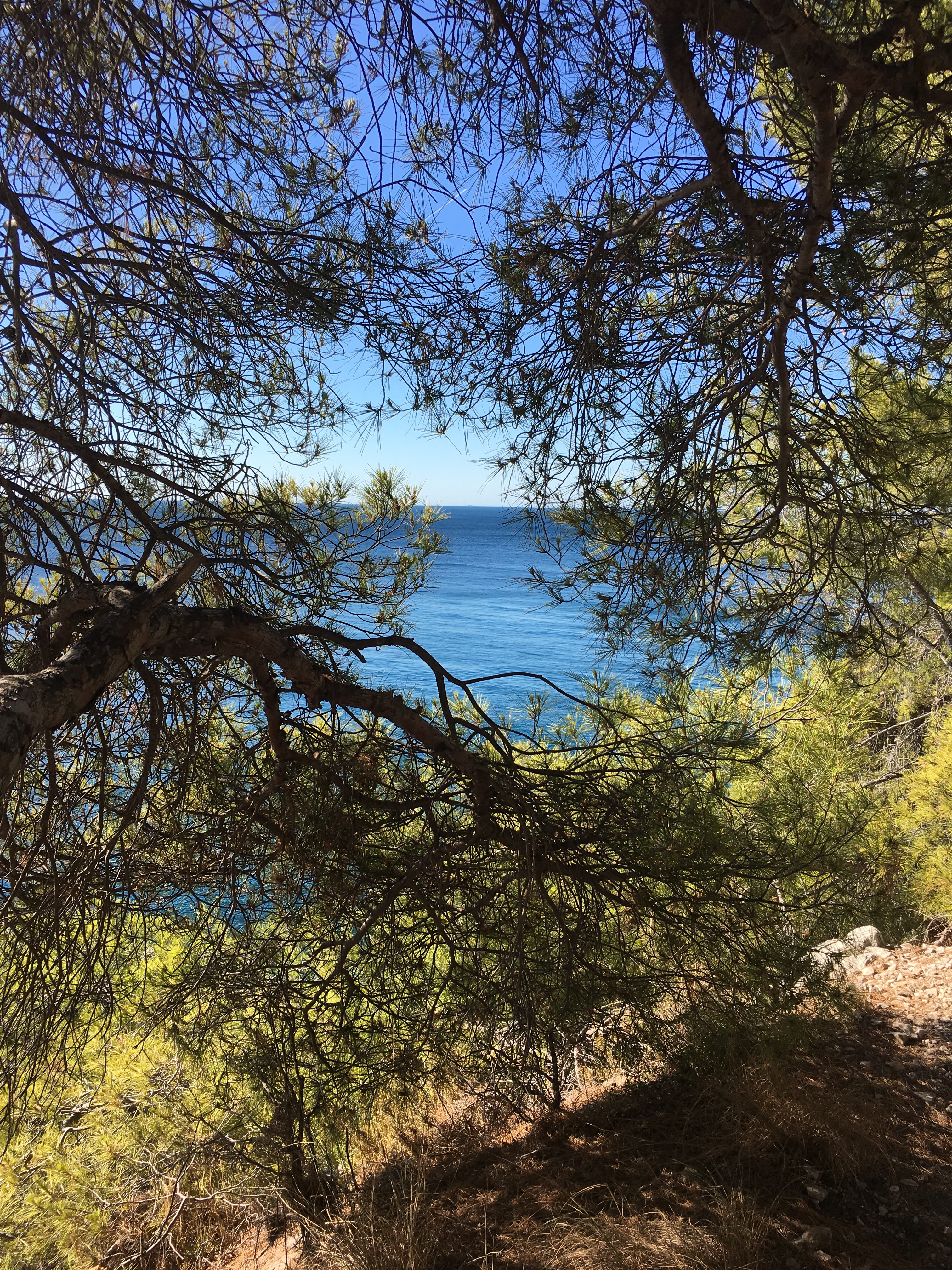 Nous avons décidé d’emprunter un autre sentier qu’à l’aller. Beaucoup moins connu que le sentier des douaniers, il faut absolument une carte pour l’emprunter sans se perdre, car il n’est pas du tout balisé. Cette alternative est intéressante car elle permet de ne pas utiliser le même sentier qu’à l’aller et d’avoir un point de vue différent sur la baie de Marseille et la Côte Bleue. À noter que ce sentier est un peu plus long (1h30) mais tout aussi plaisant.