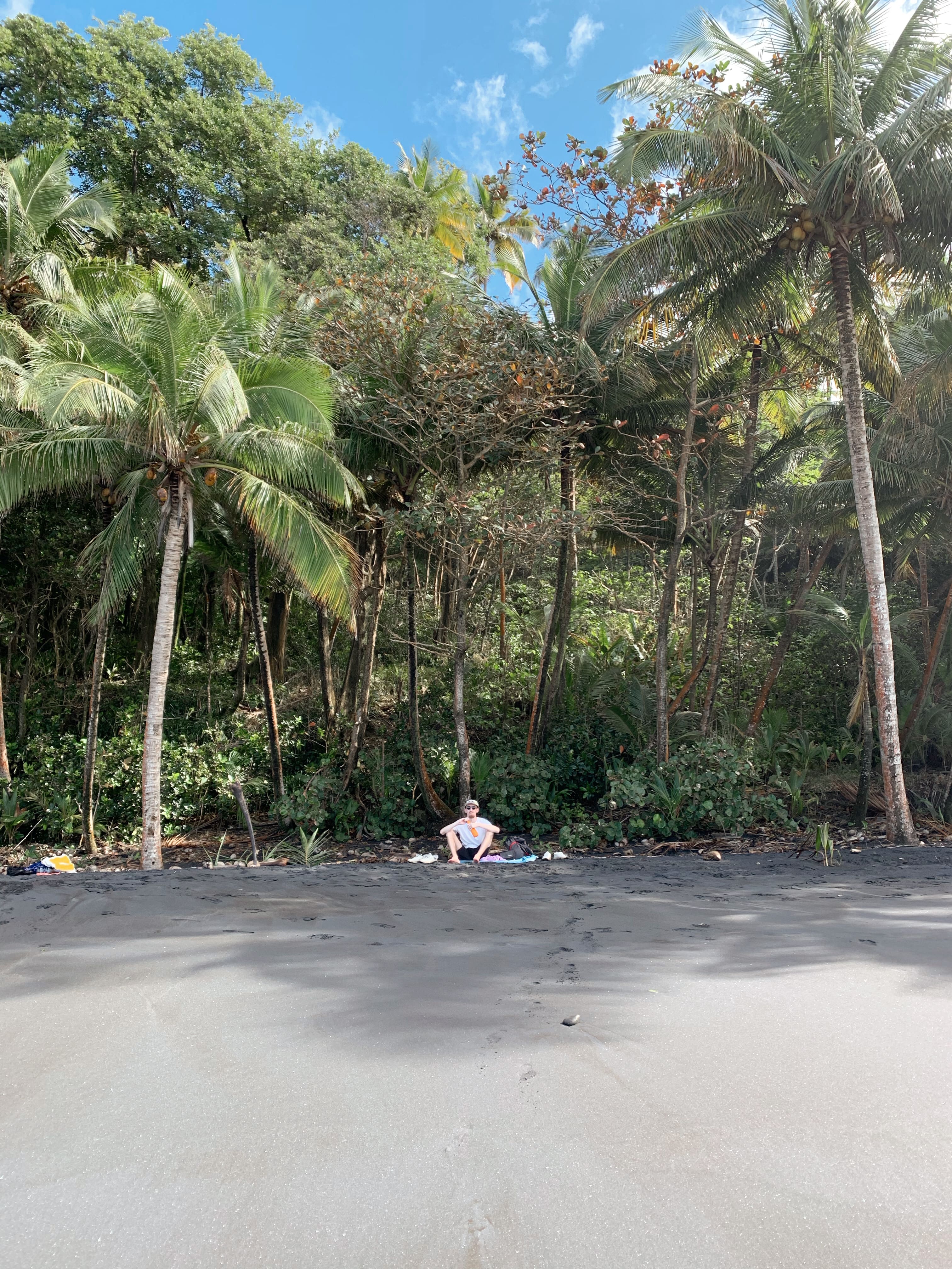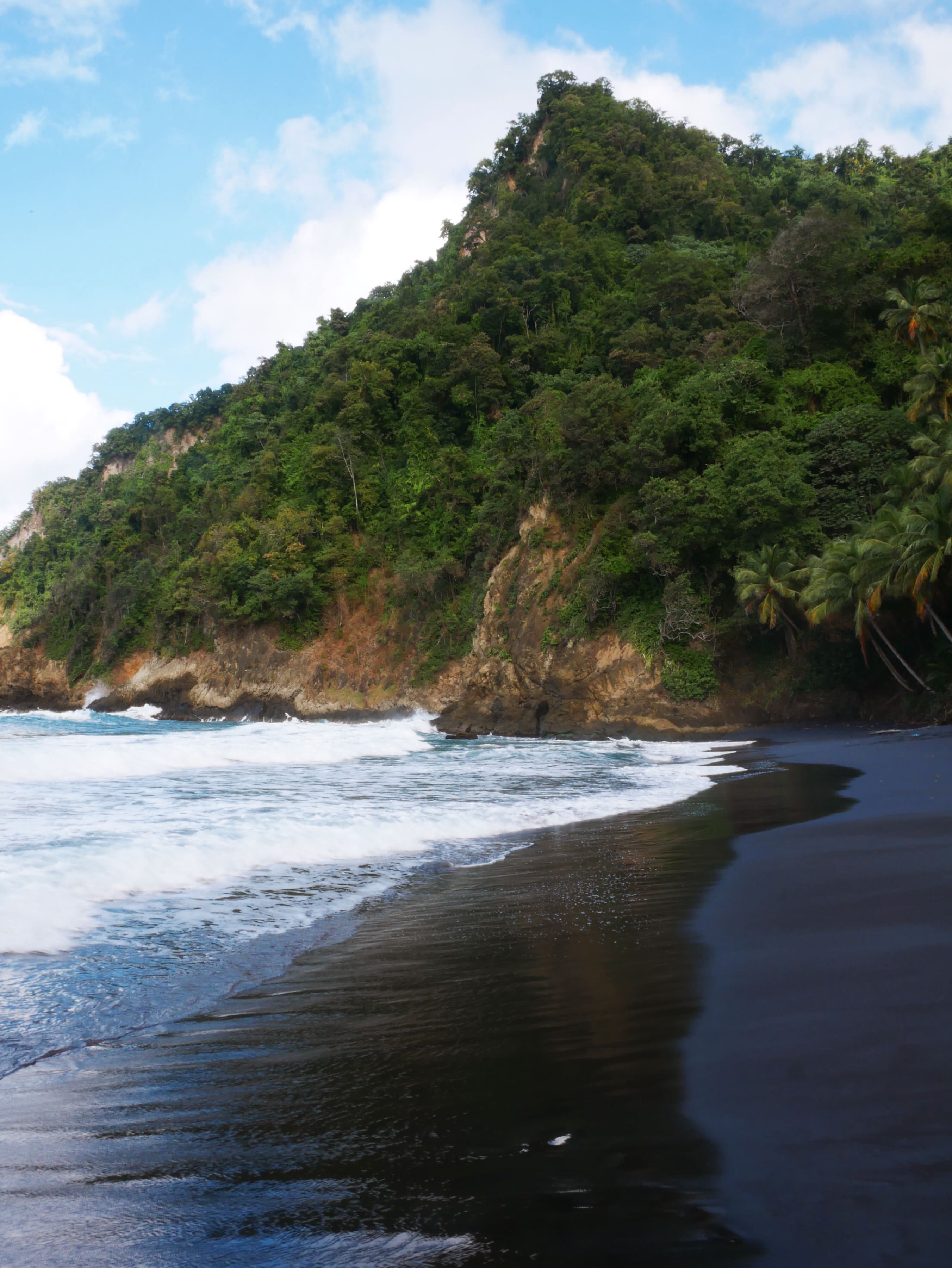 En ce qui me concerne, j’y suis allé en voiture. Une fois arrivé sur le parking, une balade de 400 mètres dans la jungle à travers une ancienne sucrerie vous amènera à la plage. Et là, un somptueux spectacle se trouve sous vos yeux : une bande de sable noir, d’imposantes falaises, une eau limpide : un joyau de la nature à l’état brut !