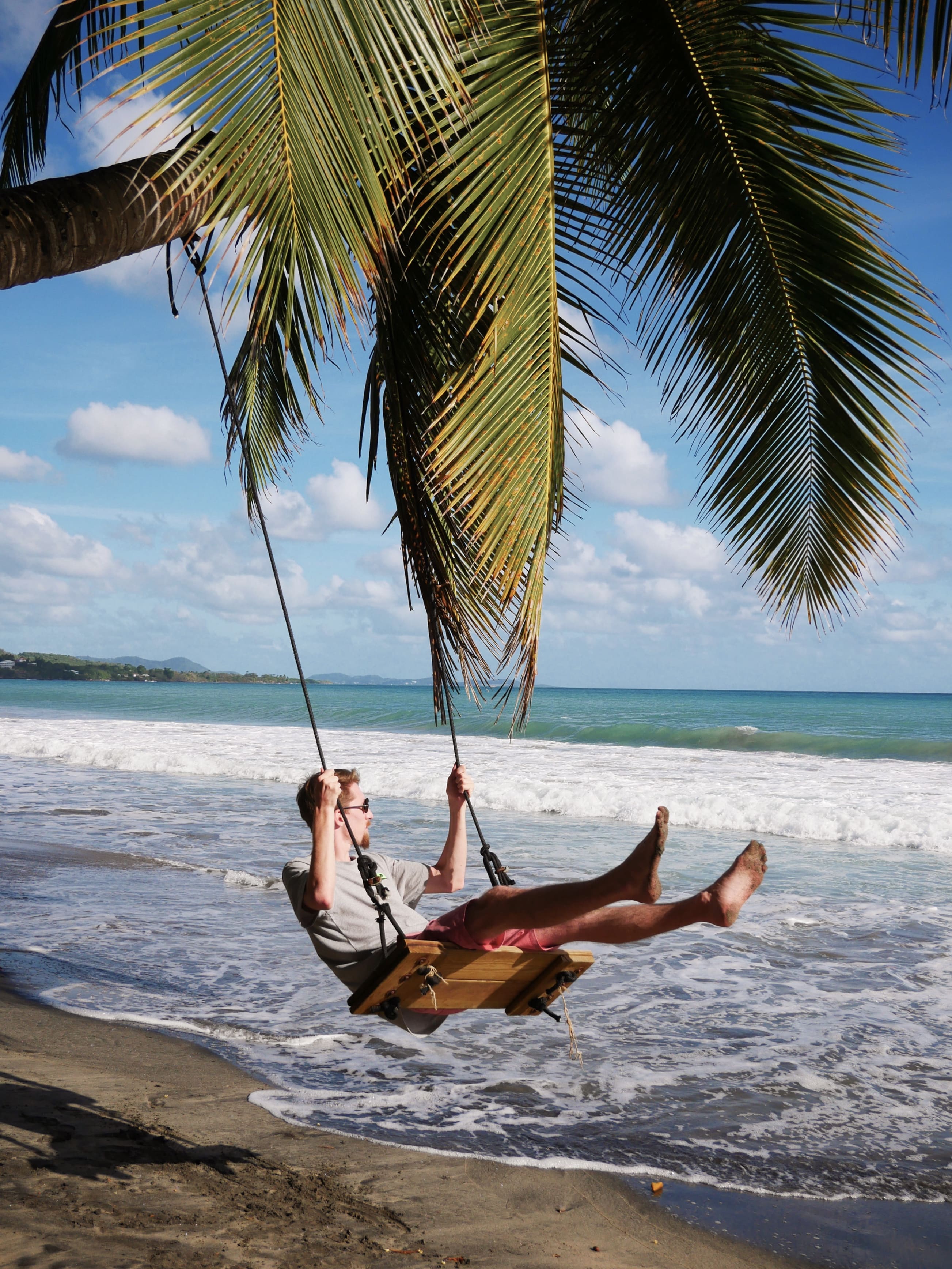 Mon endroit préféré à la Baie du Diamant se trouve au niveau de l’entrée numéro 3. C’est sans doute mon âme d’enfant qui parle, mais avoir une balançoire accrochée à un palmier au bord de l’eau sur une plage paradisiaque, franchement c’est le pied ! Cet endroit fait vraiment décor de carte postale. Je ne peux que vous recommander d’y retourner au coucher du soleil.