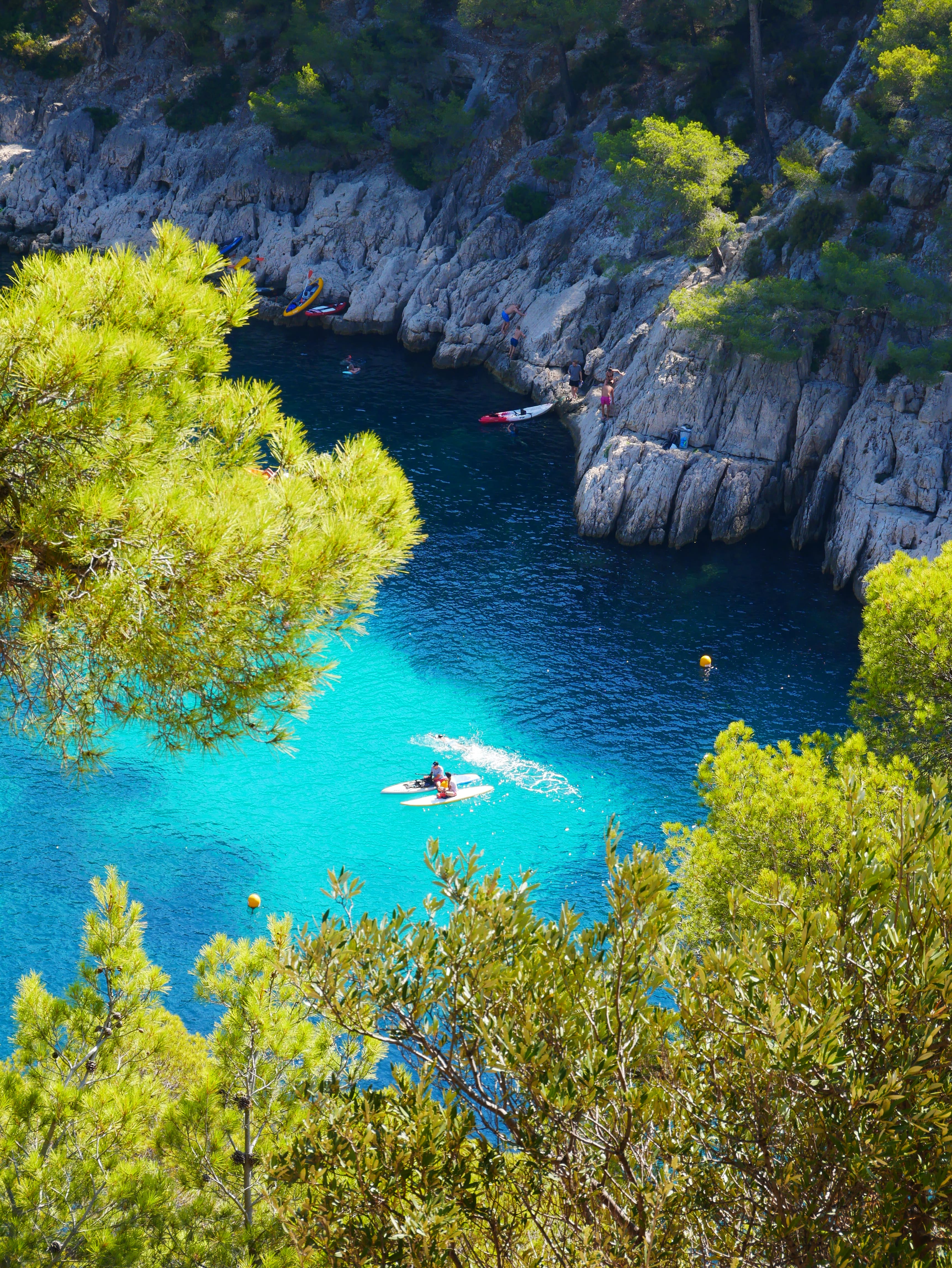 Après environ 1h30 de marche, nous étions arrivés au pied de la calanque d’En Vau et avons pu profiter de ses eaux pendant quelques heures avant de repartir par le sentier forestier. Sur le retour vers Cassis le soleil commençait tout juste à sublimer le Cap Canaille en face de nous. Magnifique !