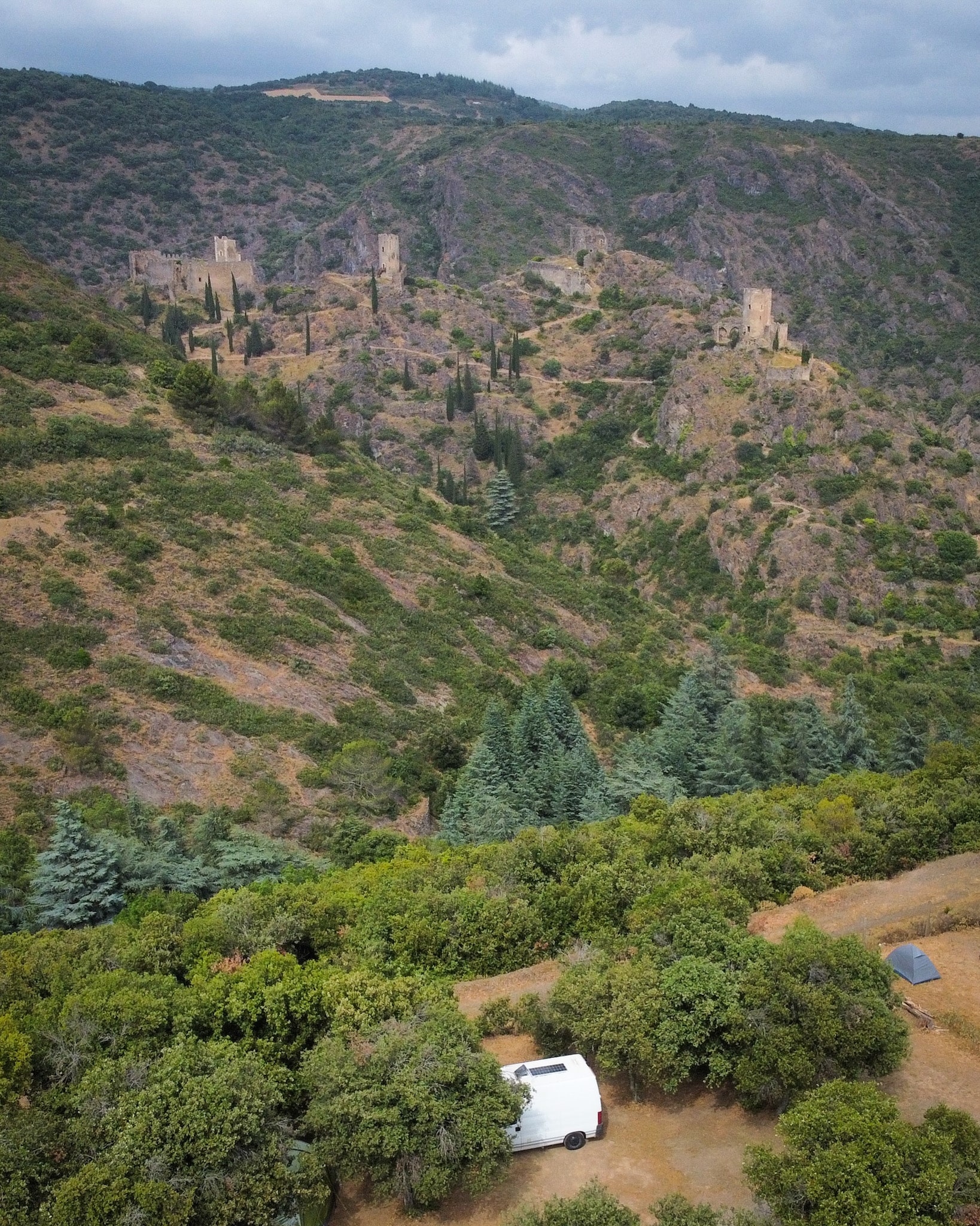 Pour ce stop dans l’arrière-pays audois nous avions comme camp de base l’aire de camping-car gratuite de Duilhac-de-Peyrepertuse. Au cœur du village avec vue sur le château, l’endroit est idéal pour vadrouiller dans les Corbières.