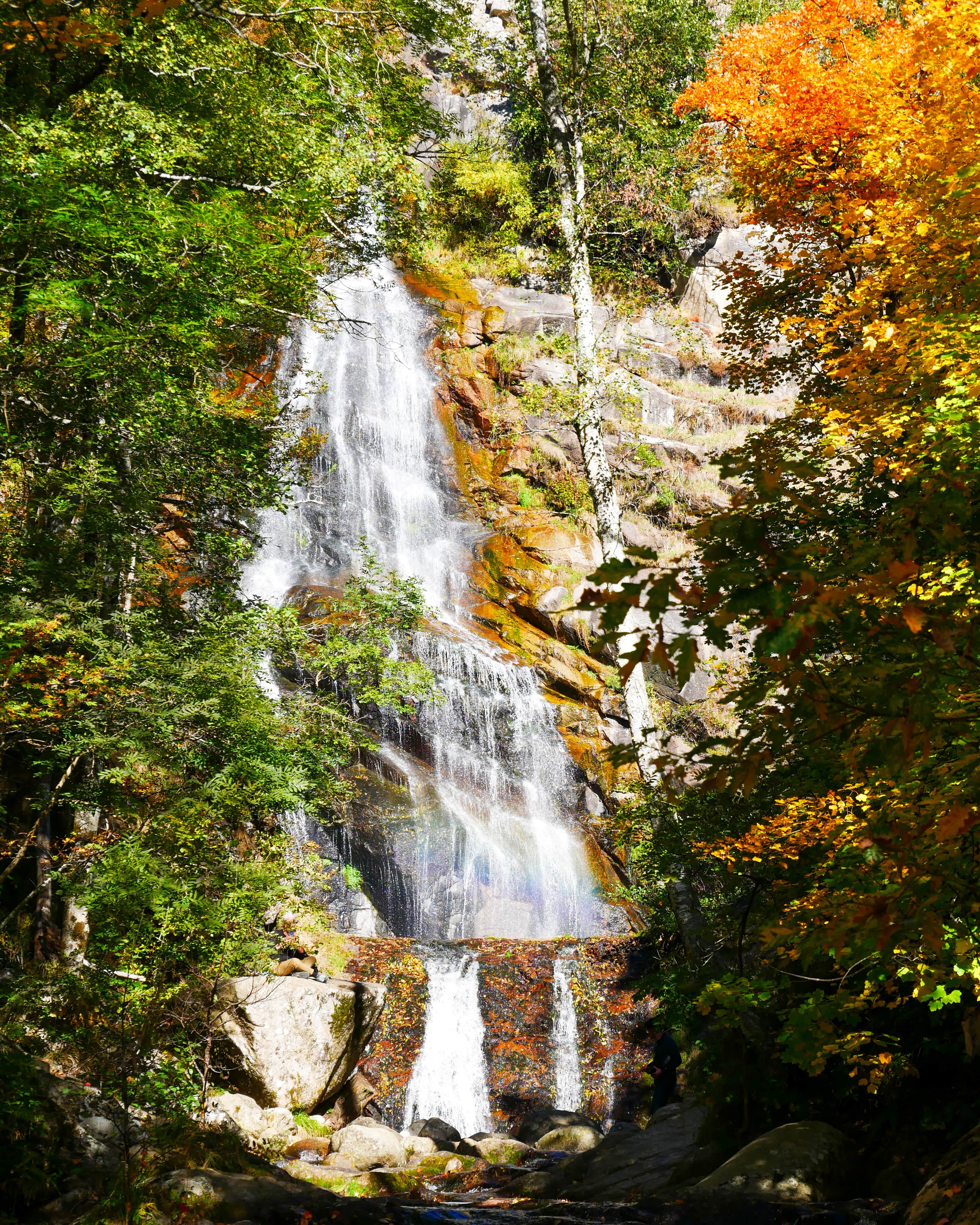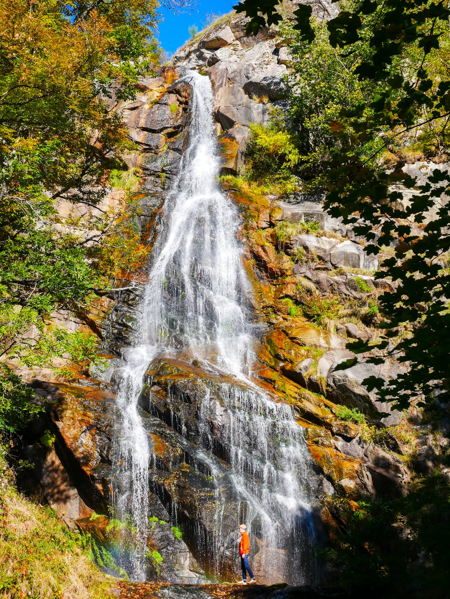 Cette période de l’année (fin octobre) est pour nous la meilleure pour découvrir la Cascade de Runes. Entre rouge, orange, jaune, la végétation se pare de ses plus belles couleurs.