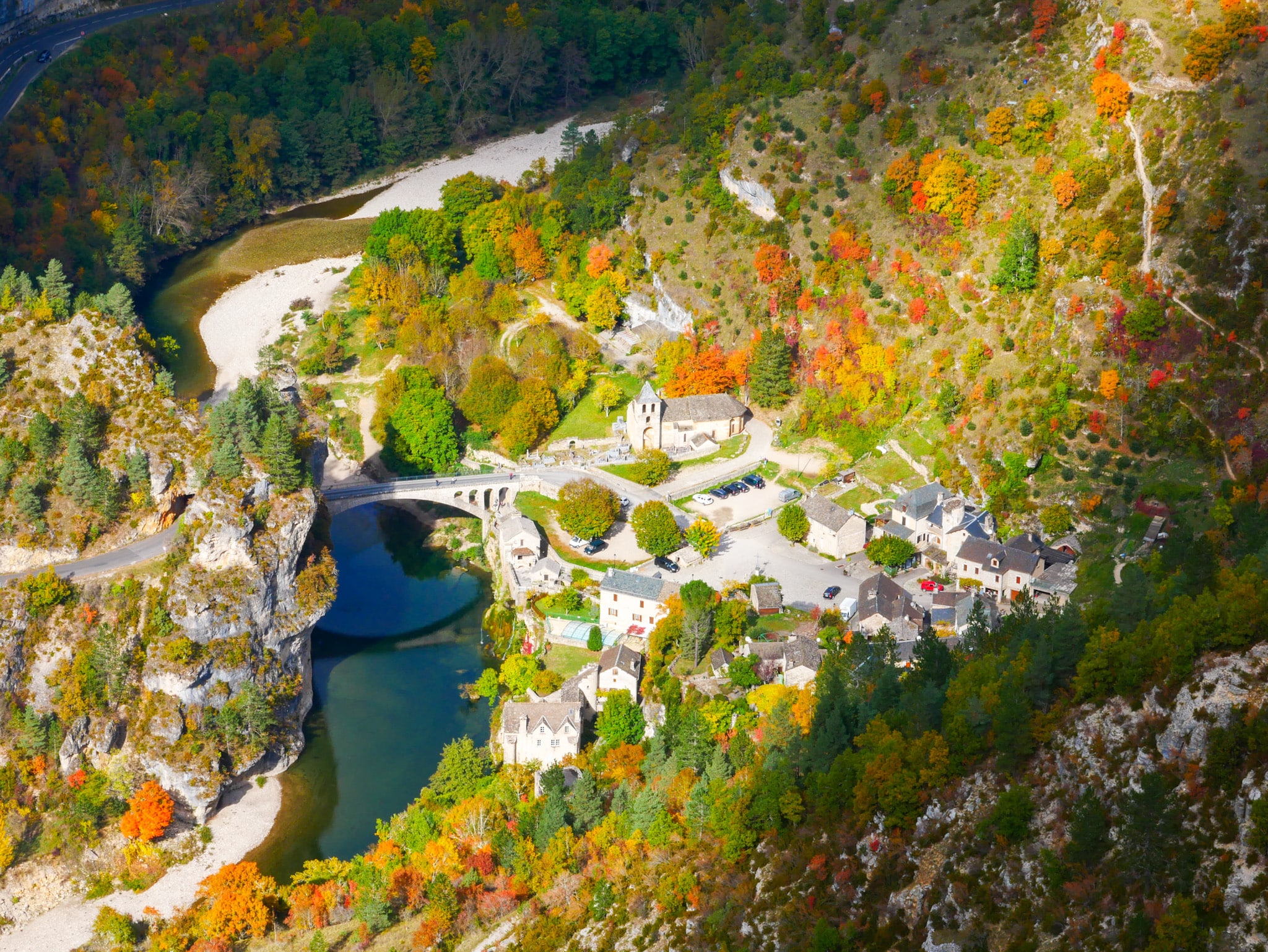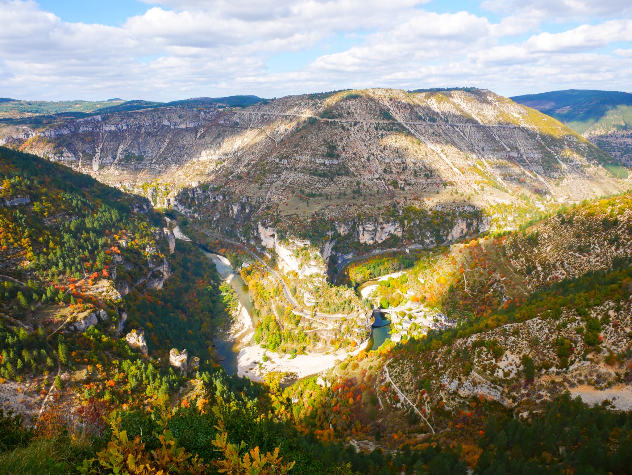 On termine notre week-end dans le Parc National des Cévennes en beauté avec un panorama à couper le souffle sur le cirque de Saint-Chély-du-Tarn.