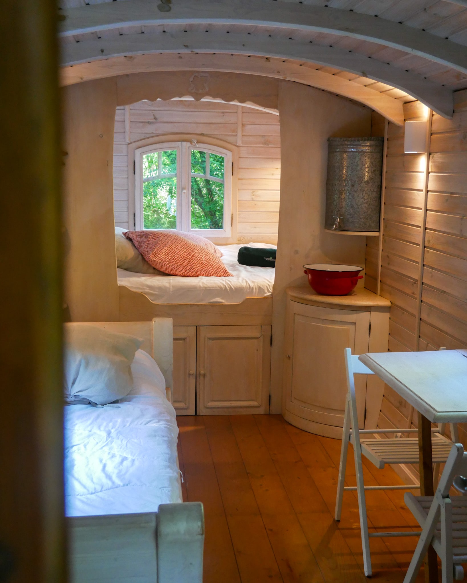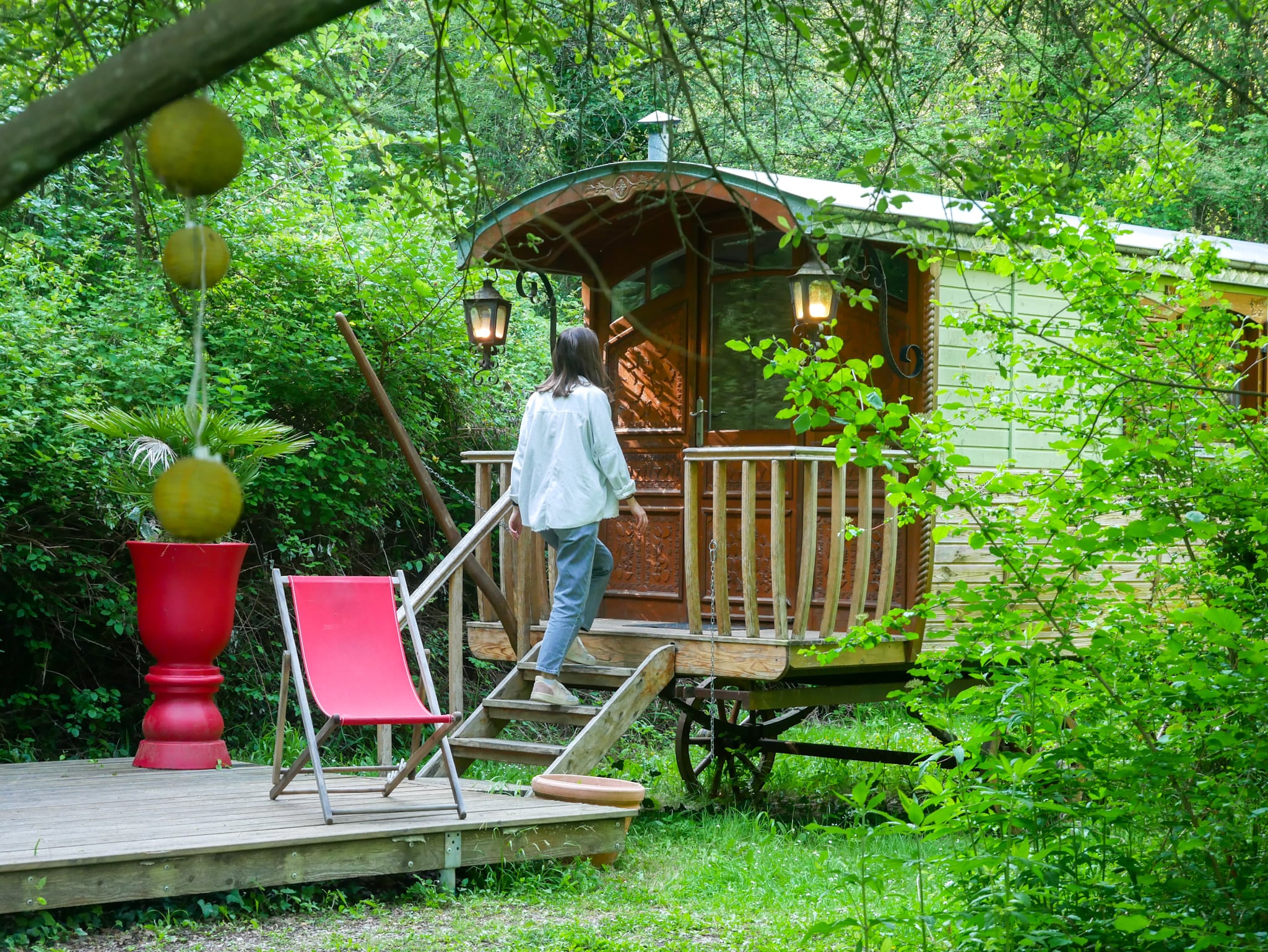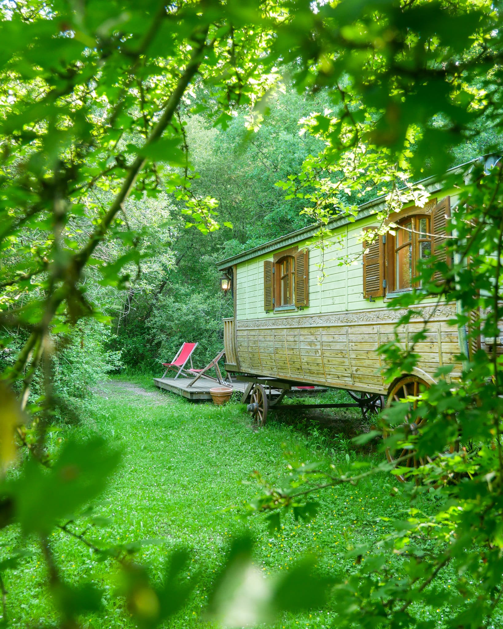 Seulement une quinzaine d’hébergements y élisent domicile, à l’abri des regards. Nous avons dormi dans la roulotte Romanée, bercés par le doux bruit de la nature.