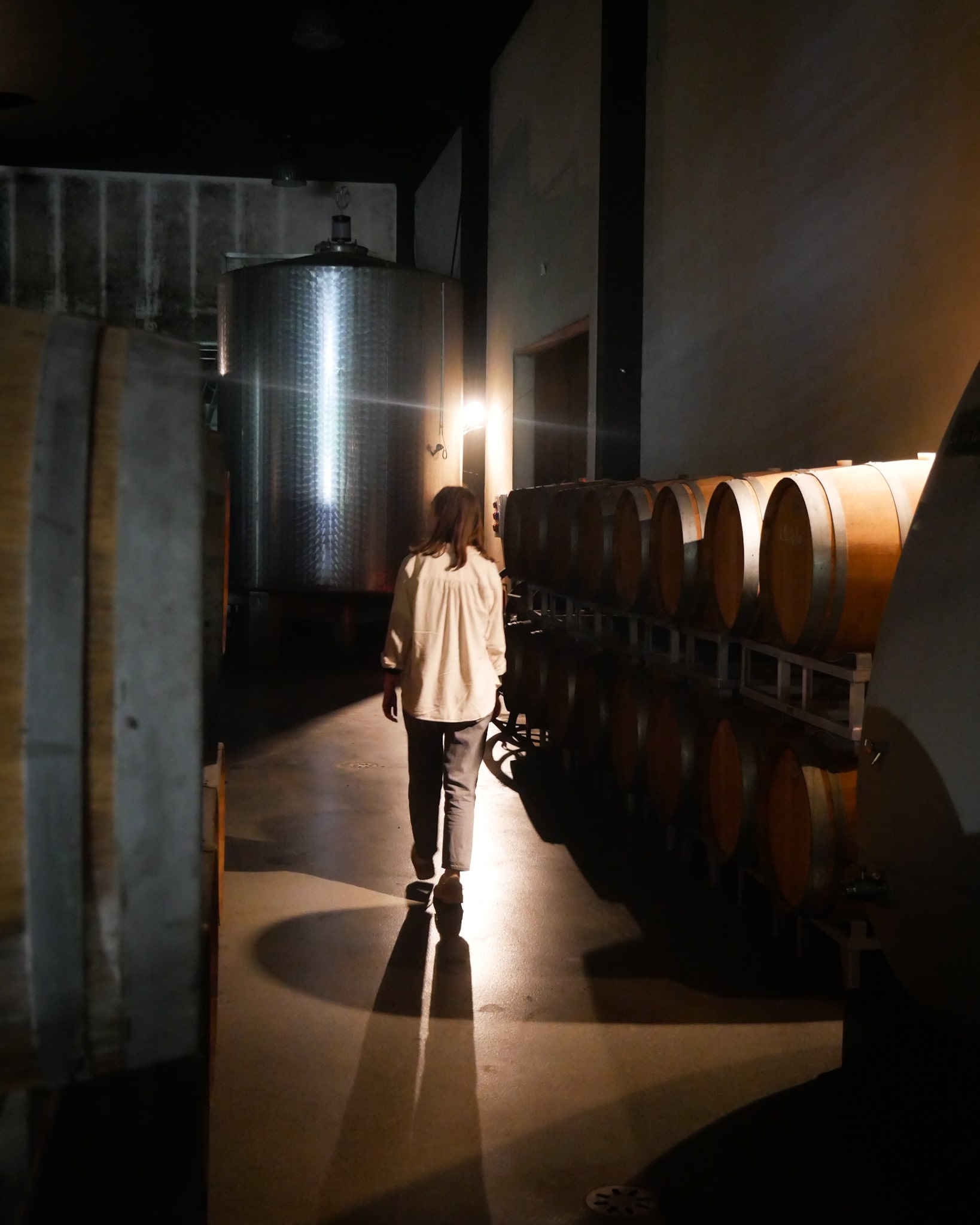 Ultra moderne tout en étant en harmonie avec la nature, le chai tout en transparence a été spécialement conçu pour permettre aux visiteurs de comprendre les différentes étapes de l’élaboration du vin. On a particulièrement apprécié la salle de dégustation avec vue sur le chai à barriques ainsi que les explications très claires de Juliette, notre guide.