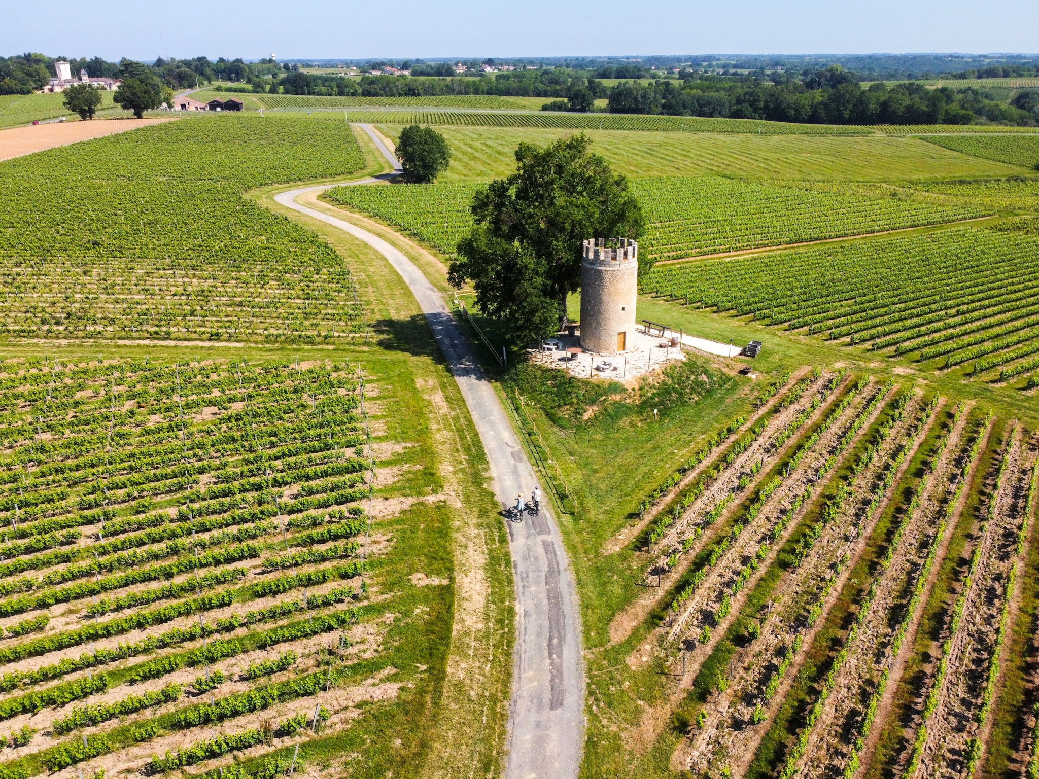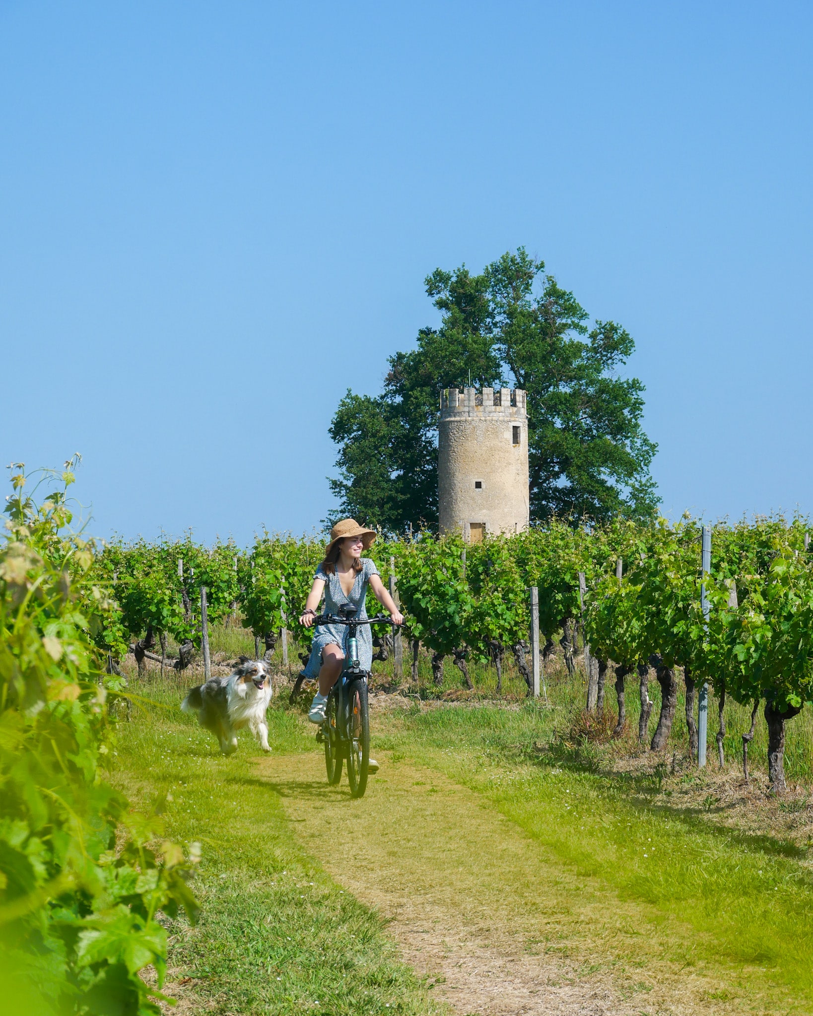 Se balader à vélo électrique dans les vignes du Château Vieille Tour