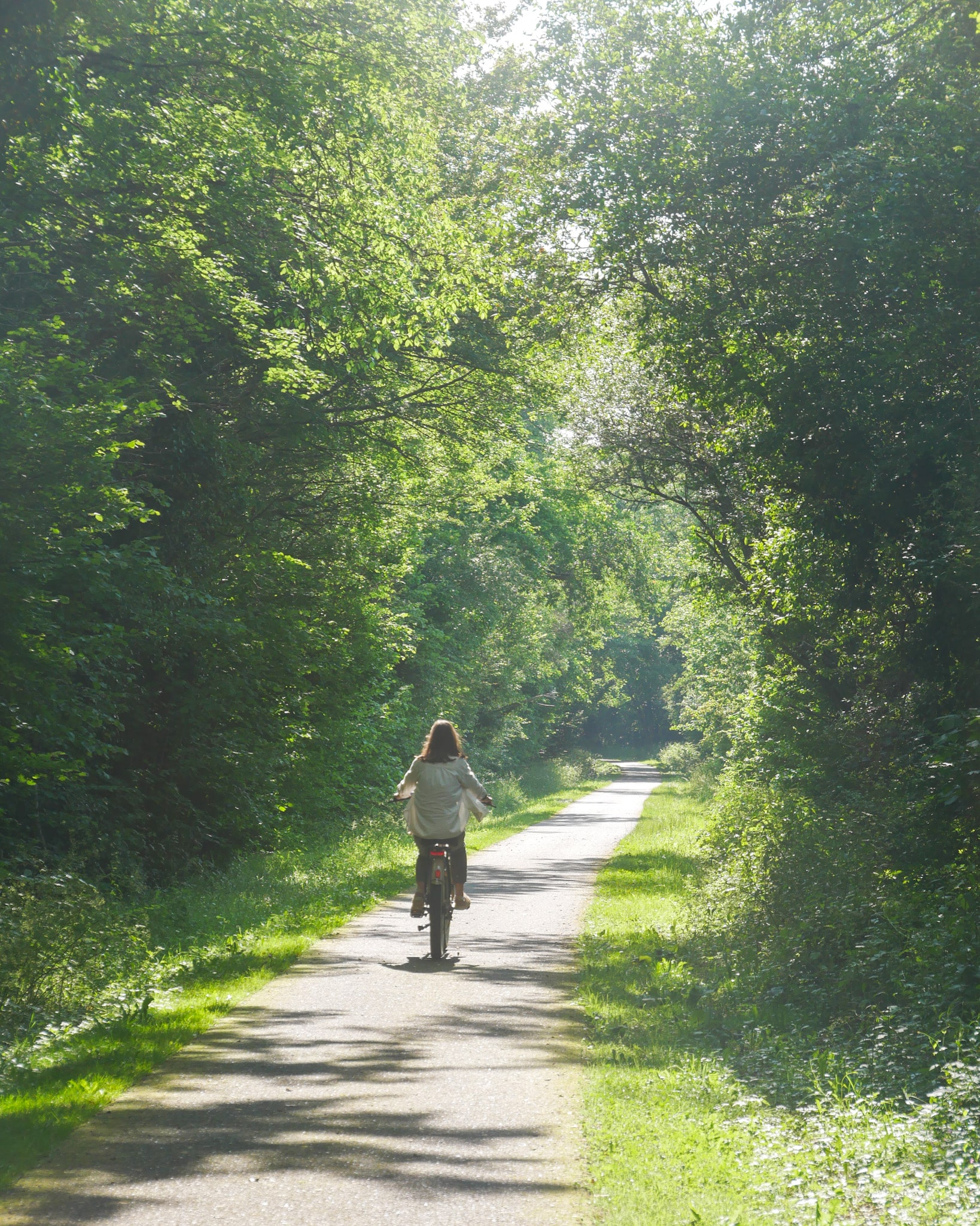 De notre côté, nous avons emprunté la voie verte Roger Lapébie, construite sur une ancienne voie ferrée. Au départ de Bordeaux, la piste de 60 km longe les bords de Garonne puis passe à travers les paysages variés de l’Entre-deux-Mers jusqu’à Sauveterre-de-Guyenne.
