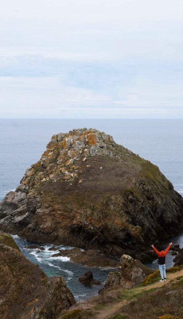 La Plage de l’Ile Vierge : car bien sûr on ne pouvait pas quitter la presqu’île sans nous y rendre. Cette pépite est accessible uniquement par un bout du GR34 que l’on a rejoint depuis le parking de la maison des Minéraux de Saint-Hernot. Une vingtaine de minutes à pied sont nécessaires pour rejoindre le sentier du littoral. ⚠️ Il est interdit d’y descendre. On admire le paysage depuis les hauteurs sur le sentier balisé.