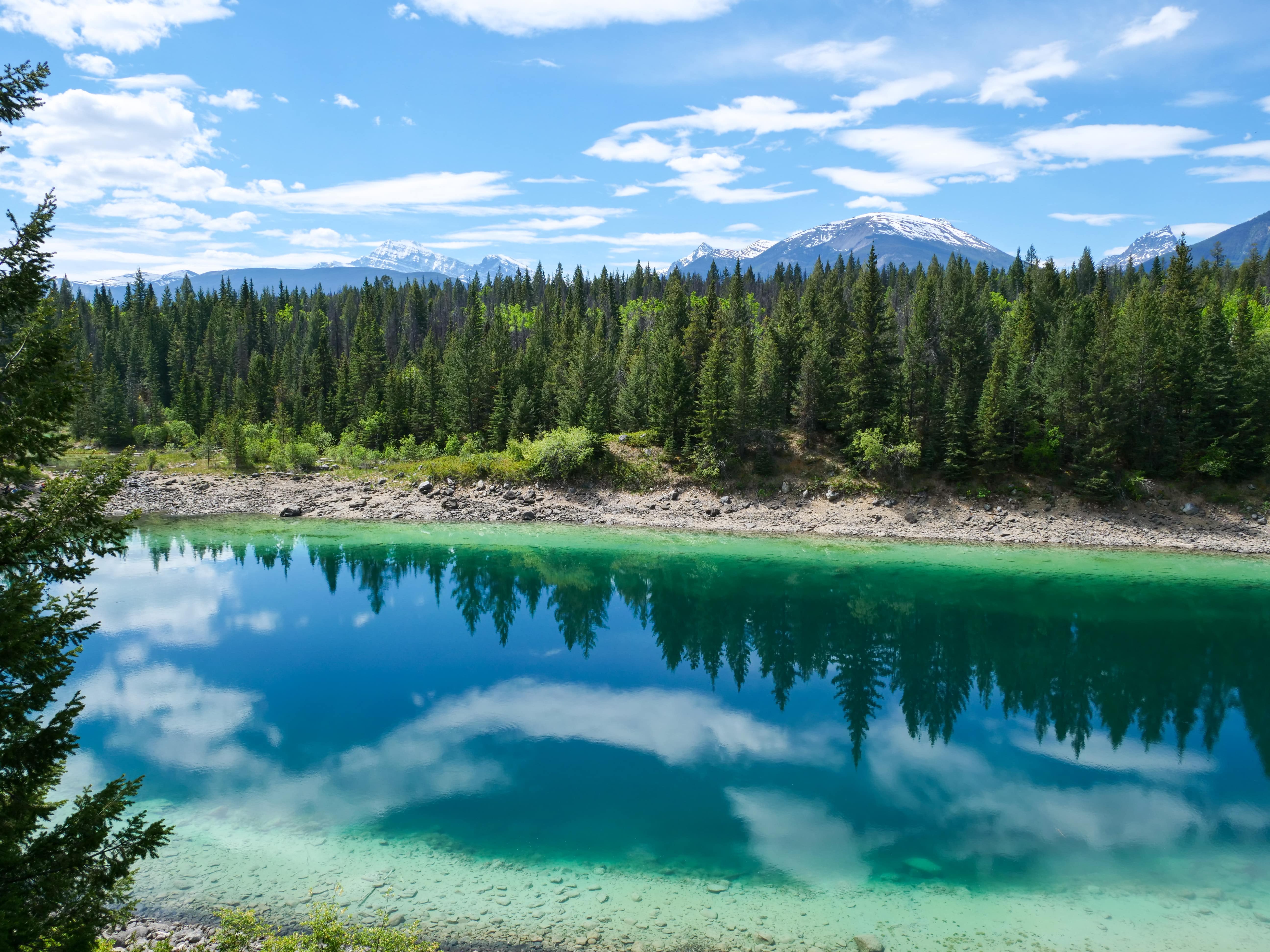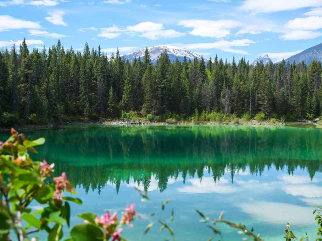 Autour de Jasper, je vous conseille de visiter plusieurs lacs situés vraiment proches du centre-ville comme les lacs Annette et Edith, le Lac Pyramid ou Lac Beauvert. Coup de cœur pour ce dernier avec sa couleur transparente et sa vue sur la montagne Pyramid.