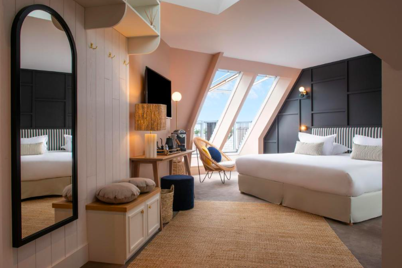Pour ceux ayant un budget un peu plus conséquent, nous ne pouvons que vous recommander l’hôtel Celtique & Spa**** à 50 mètres de la grande plage. La maison compte désormais 53 Chambres & Suites, un restaurant, un bar, une piscine intérieure chauffée et un spa tous rénovés en 2021 avec modernité et élégance.