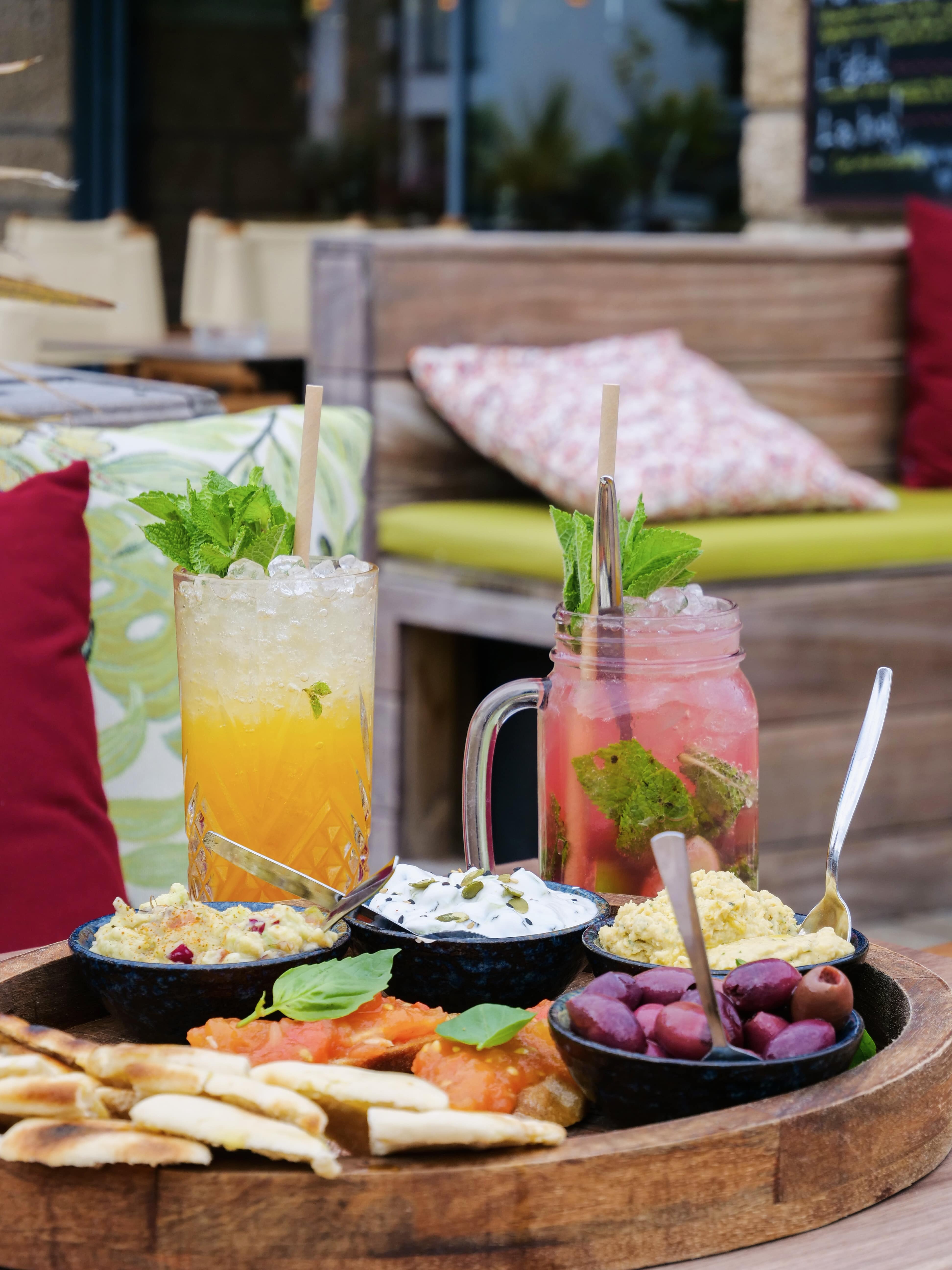 Le Cavok propose de délicieuses planches à base de charcuteries, fromages, poissons, ou mezzés méditerranéens. Nous avons opté pour ces derniers et la planche était hyper généreuse et à base de bons produits frais (houmous, tzatziki, guacamole, pitas…). Côté boissons, on apprécie la large gamme de cocktails sur mesure raffinés avec ou sans alcool 🍹