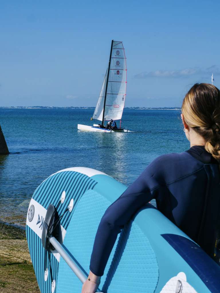 On quitte la terre ferme pour cette deuxième journée à Carnac pour une nouvelle activité en duo : le paddle avec Nautic Sport. Après avoir enfilé nos combis (il faisait encore un peu frisquet ce mois de mai à Carnac), c’etait parti pour la session paddle !