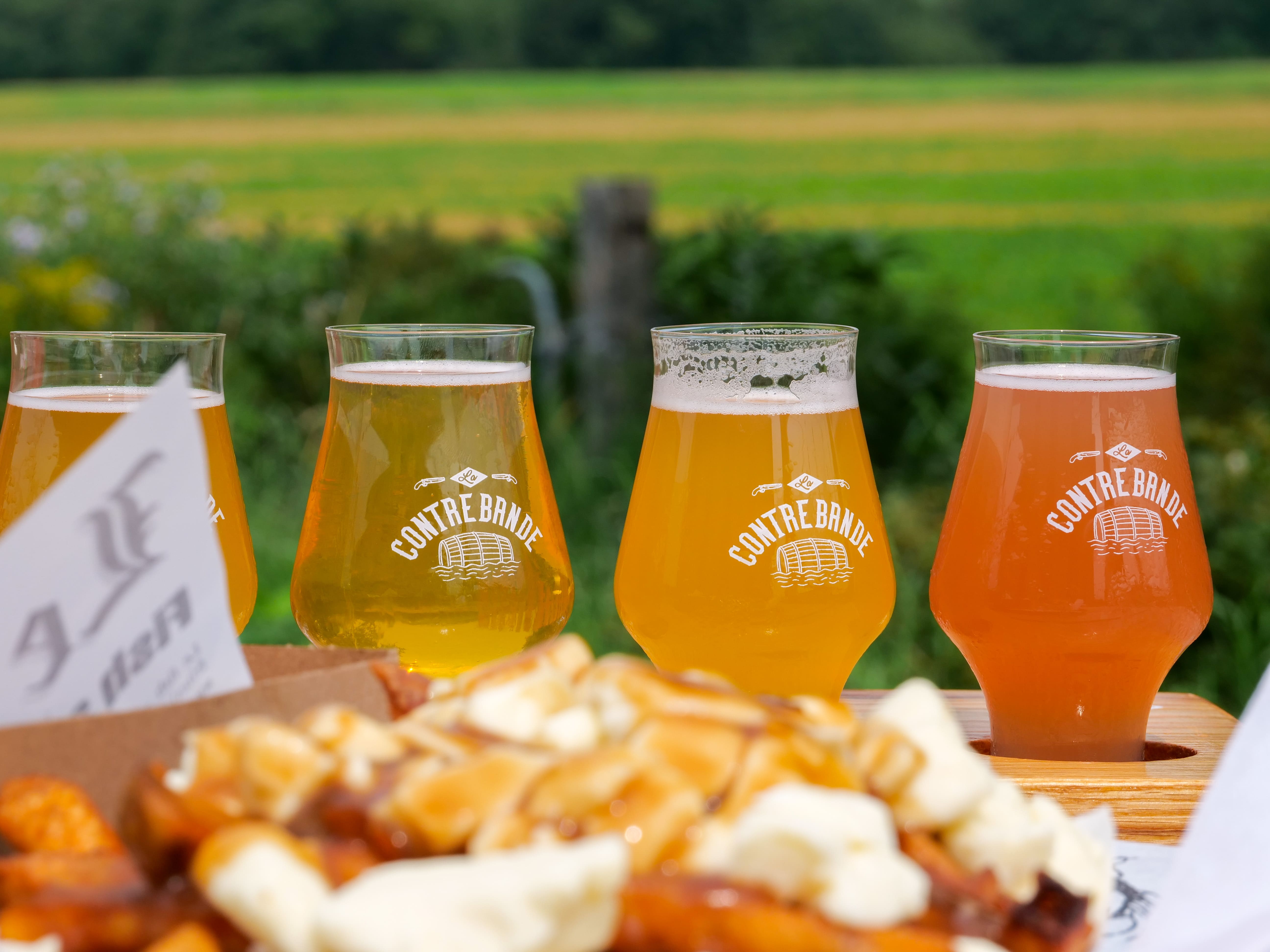Profitez de votre balade sur la Cycloroute de Bellechasse pour goûter de bonnes bières locales sur une terrasse ambiance guinguette avec vue sur les paysages champêtres de Bellechasse.