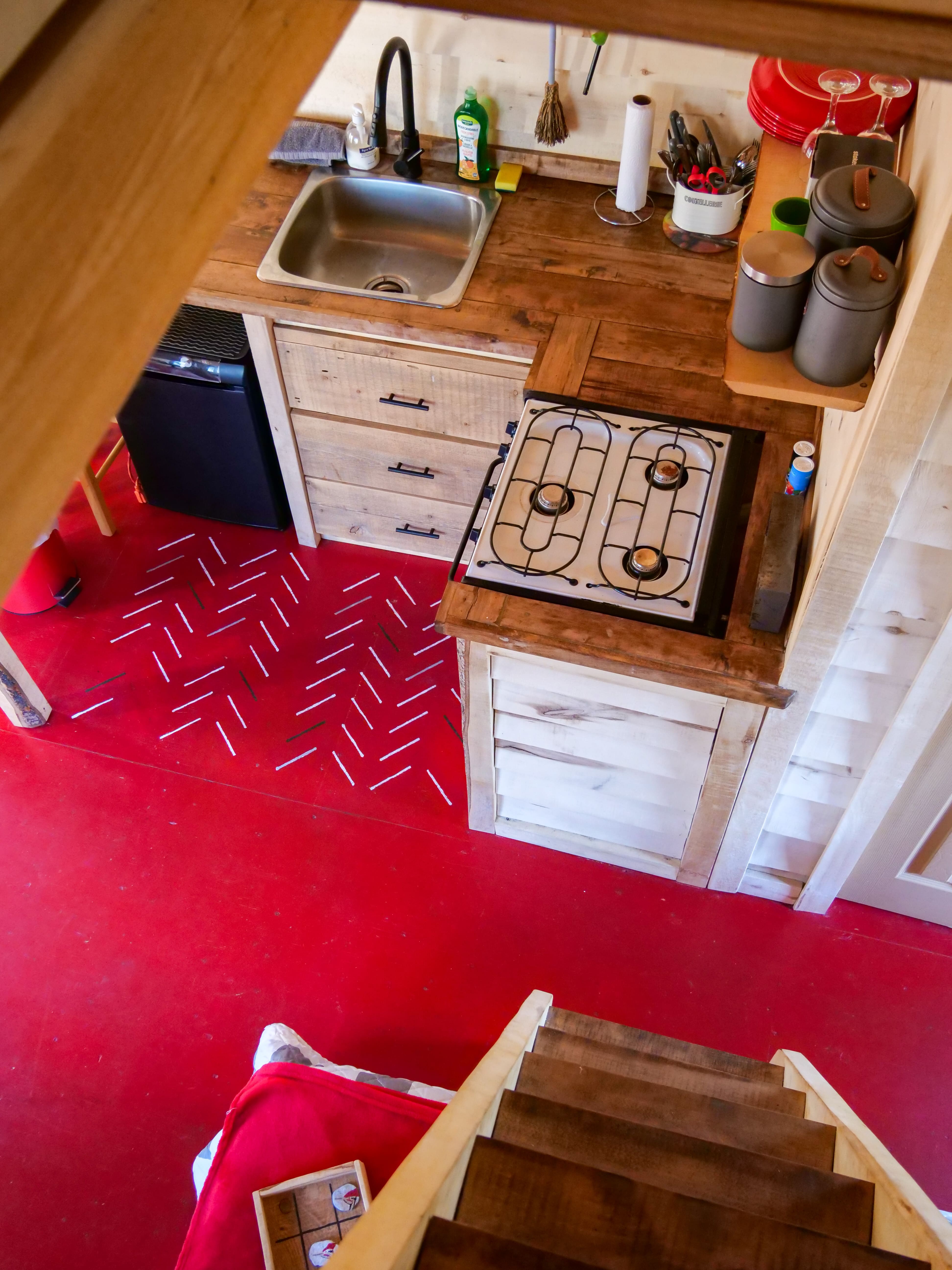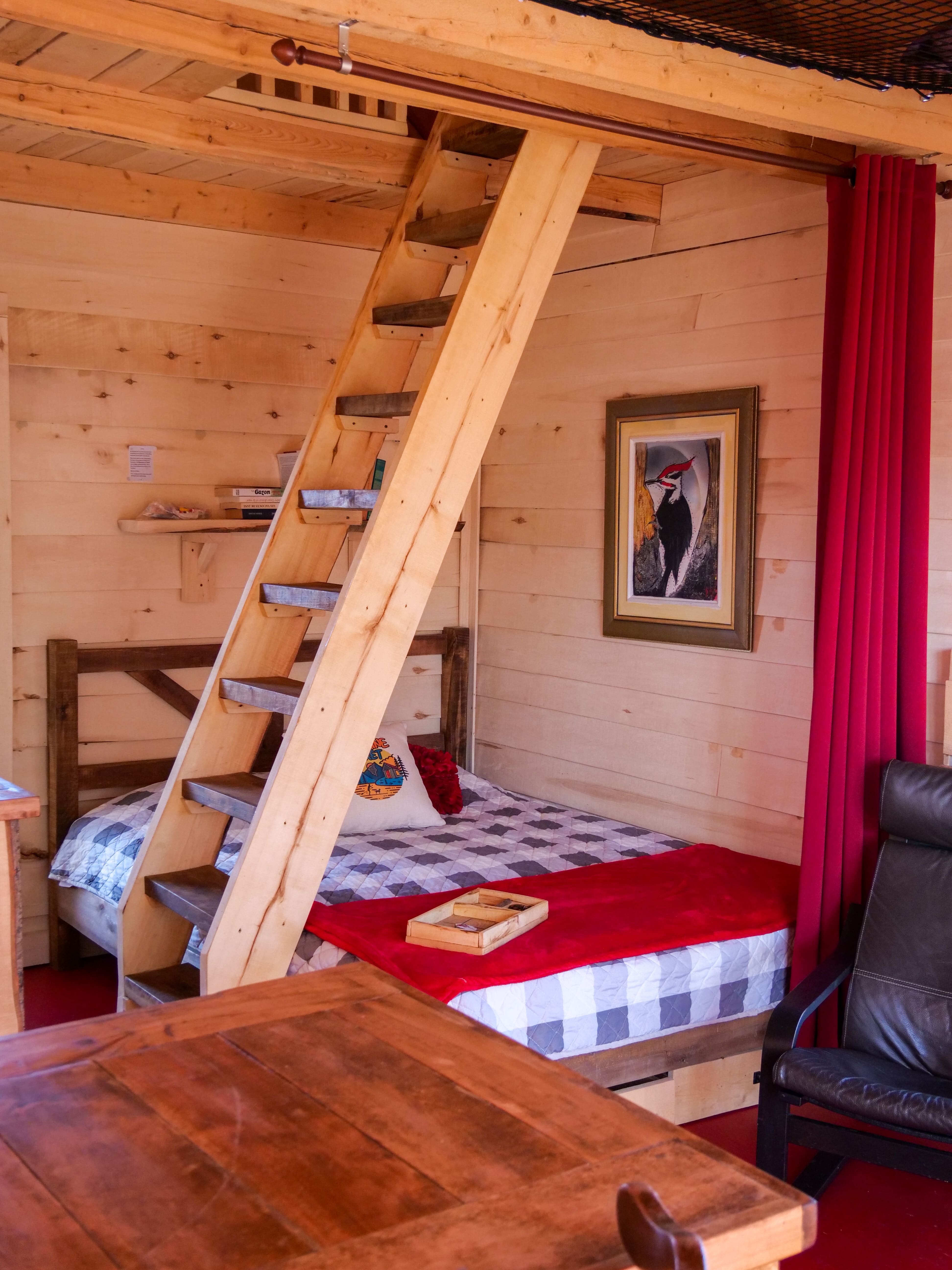 Chaque chalet offre un lit queen et deux lits en mezzanine, une cuisine équipée et une salle de bain. Coup de cœur pour le filet d’habitation dans lequel je pourrais me prélasser pendant des heures.