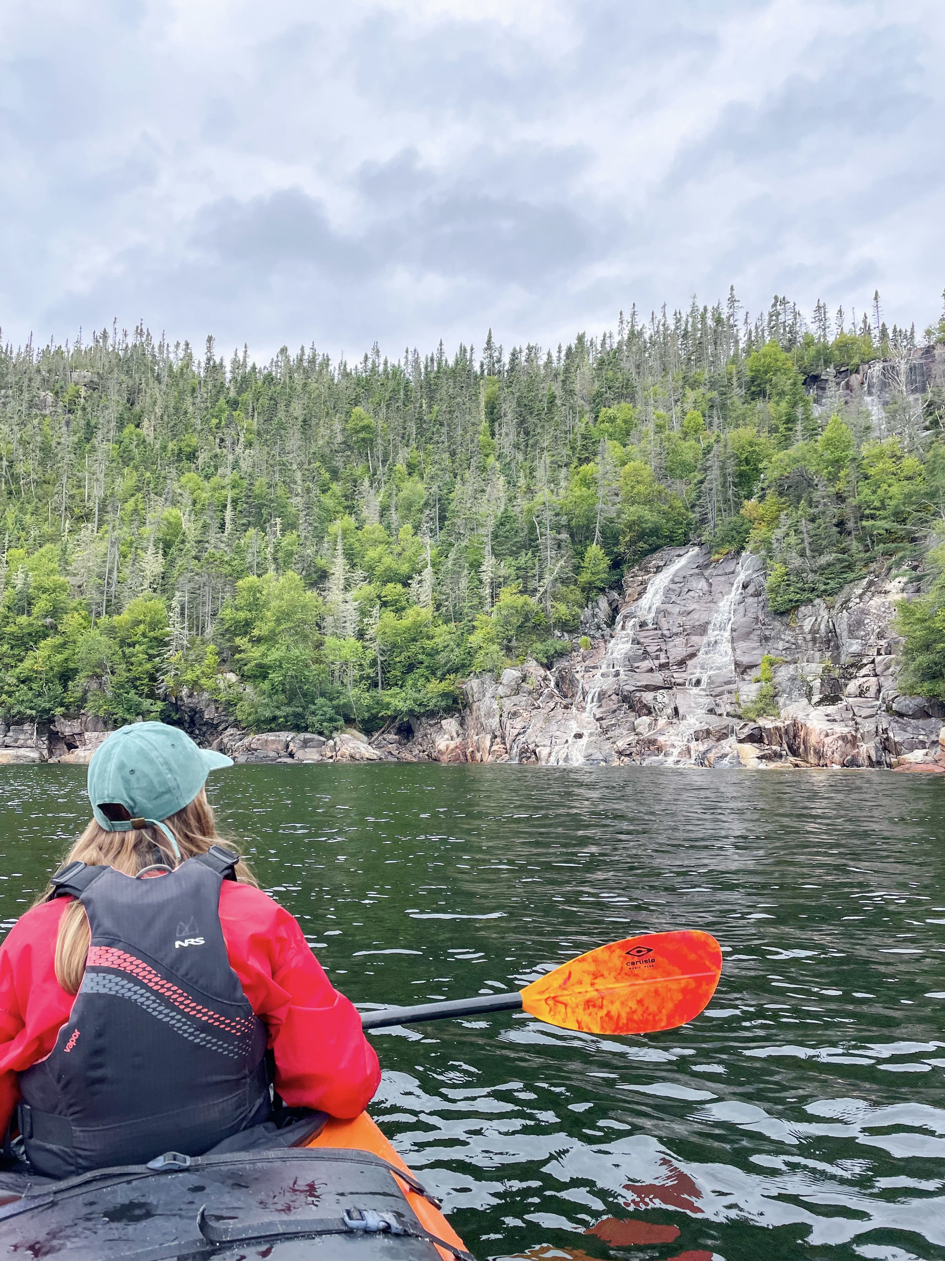 L’après-midi commence par une balade en kayak de mer dans la Baie de St-Pancrace avec Jo, mon super guide qui me fournit de nombreuses explications sur la période glaciaire qui a façonné le paysage de la baie. Le décor est sublime, en particulier les deux cascades dont on peut s’approcher vraiment près en kayak. Ajoutez au tout des phoques et marsouins, je suis le plus heureux sur mon embarcation.