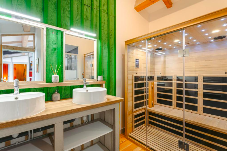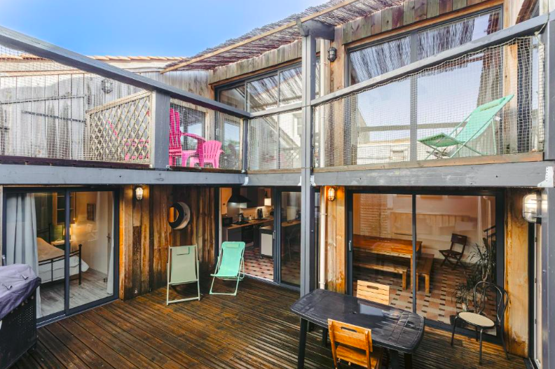 Pour dormir à Saint-Denis-d’Oléron nous vous recommandons cette grande maison de vacances style loft qui peut accueillir jusqu’à 8 voyageurs. Situé dans le coeur du village à une quinzaine de minutes à pied de la Plage de La Boirie, nous avons été séduits par la décoration du lieu et sa grande terrasse. Sans mentionner le spa privatif dans la salle de bain, un vrai luxe pour des vacances sur l’Île d’Oléron.