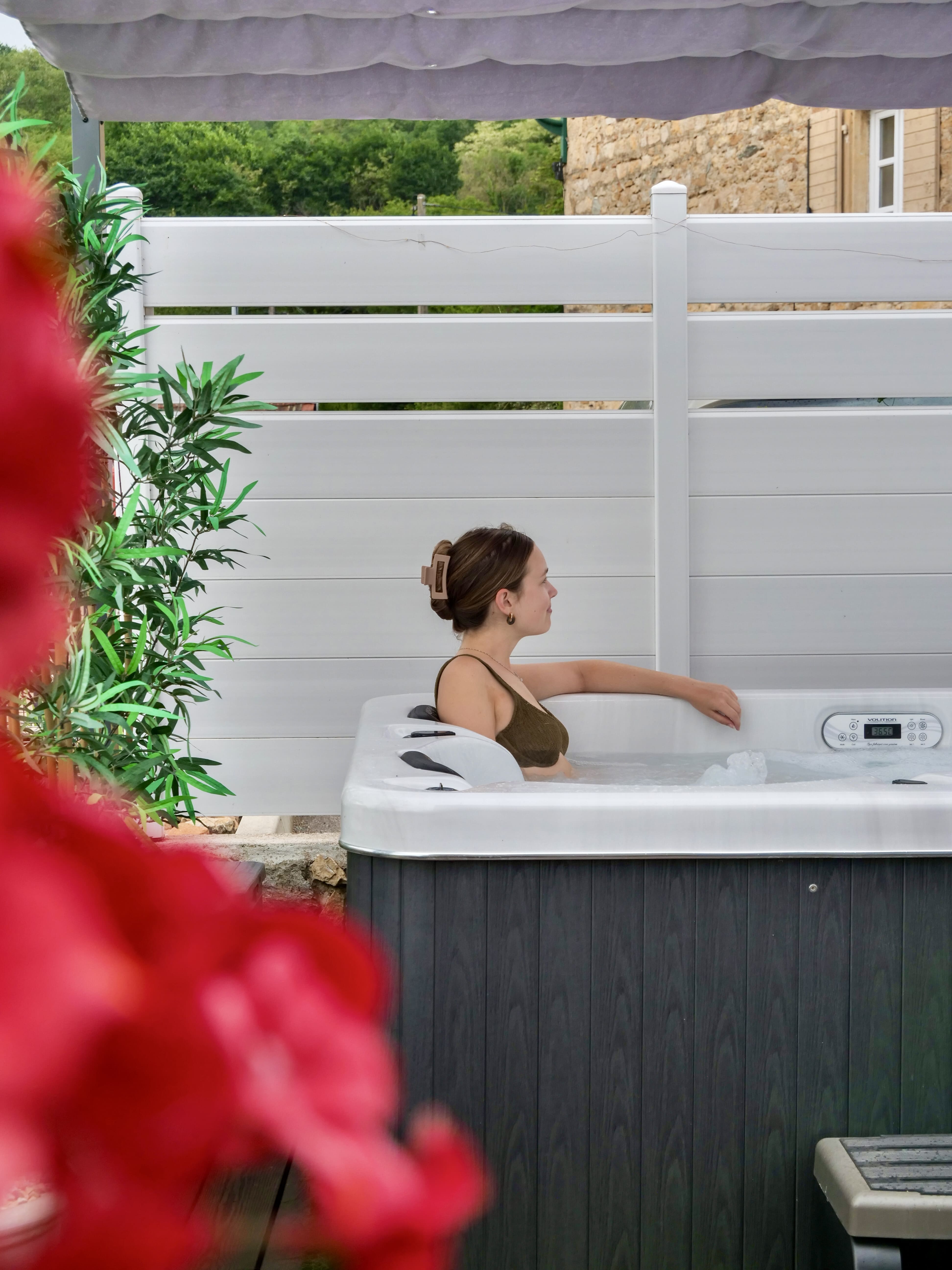 Ici la sérénité et la détente sont maîtres-mots notamment avec une grande terrasse aménagée et un jacuzzi privatif.