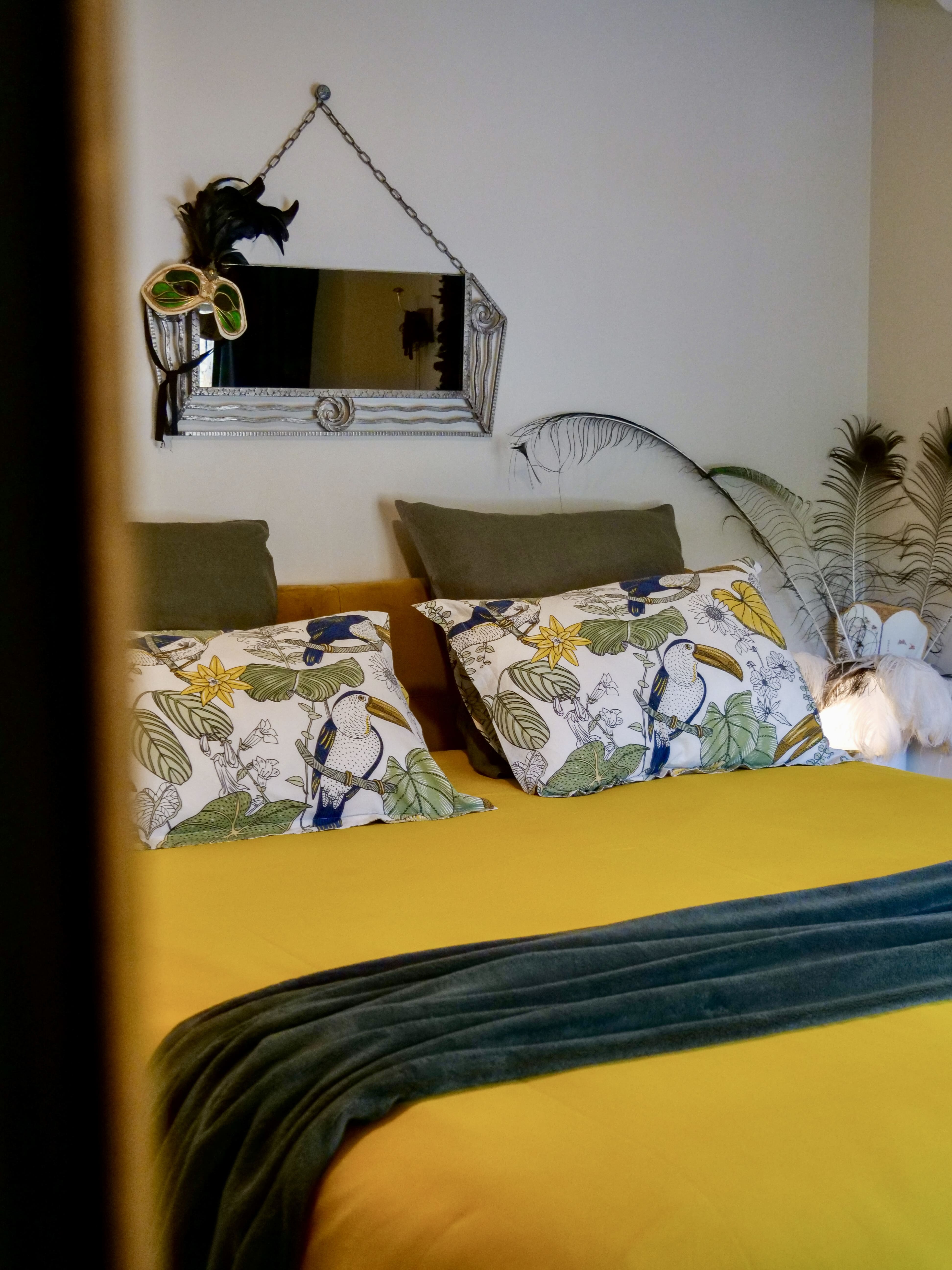 À l’intérieur du gîte, vous trouverez une grande pièce à vivre, une cuisine équipée avec une machine à café italienne, deux chambres avec lits doubles et une salle de bain. On adore la décoration qui a été poussée dans les moindres détails.