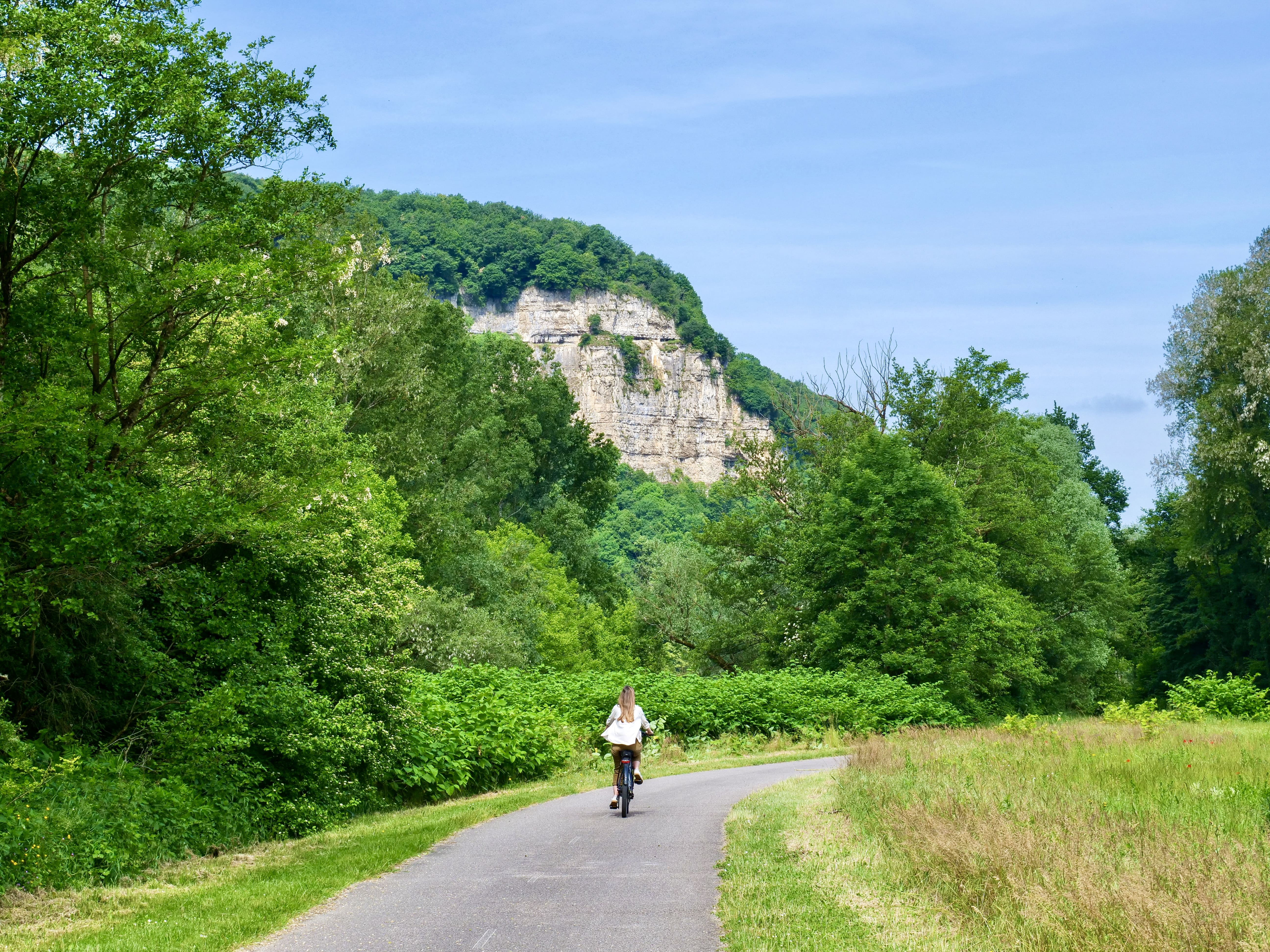 Vélo le long du Rhône avec la Via Rhôna, patrimoine d’exception avec plusieurs cités médiévales de charme, nature omniprésente et sites de loisirs à l’image des Grottes de La Balme.